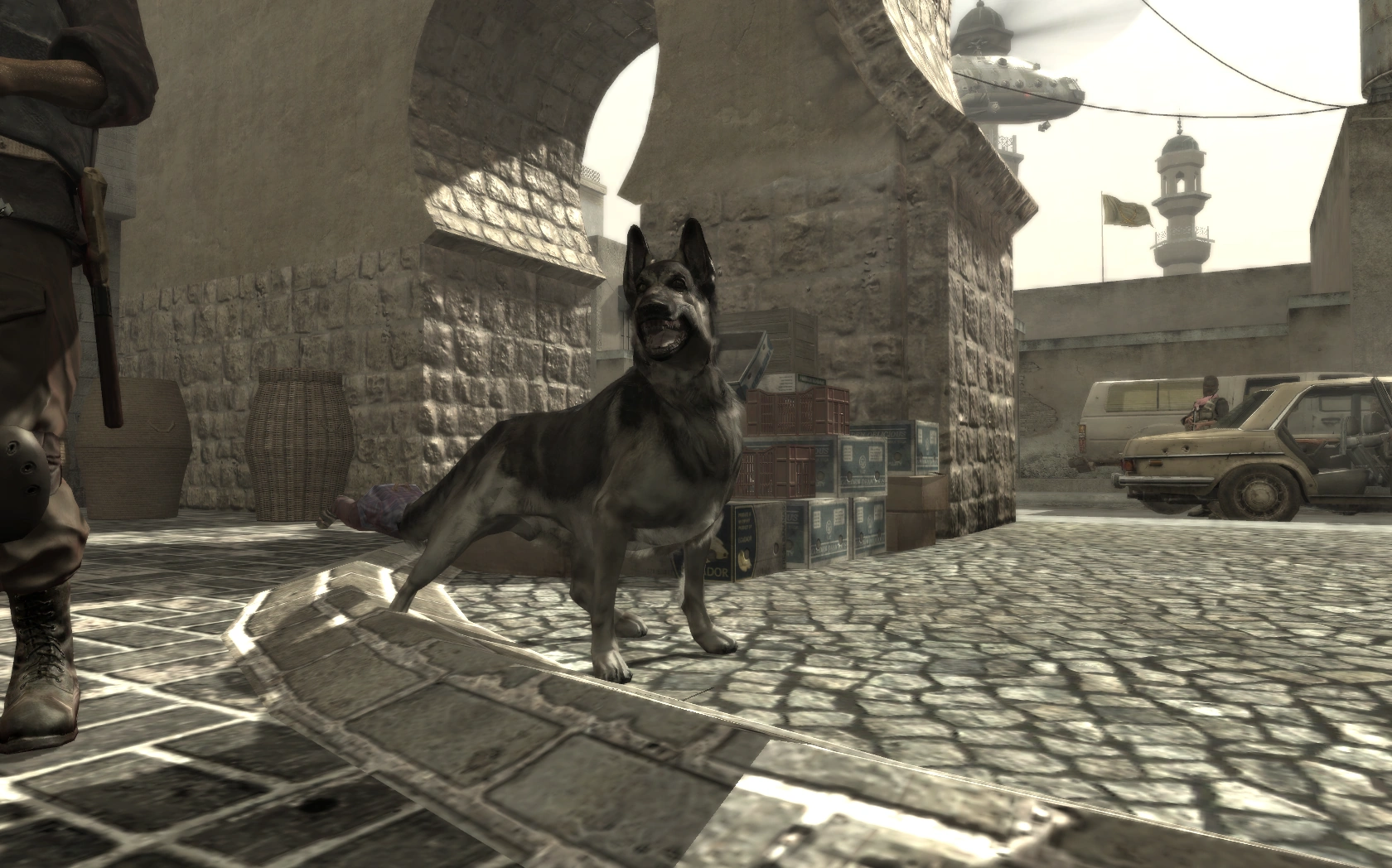 Собаки появляются только в миссии ОМП, где противостоят отряду "Кило-1". Однако лично можно будет увидеть всего лишь одну собаку, и то она не нападёт на игрока (если он, конечно, не нарушит "стелс"-режим). Собака афроамериканская.