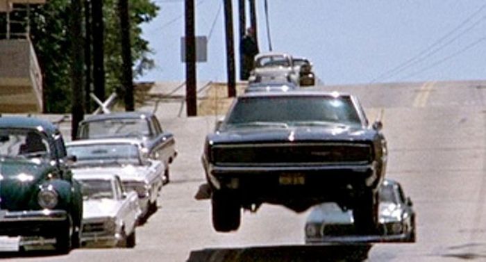 В общем, не будем пересказывать весь фильм (вероятно, кто-нибудь сделает себе подарок и посмотрит этот шедевр), остановимся на самом важном для нас моменте. Сцена погони начинается приблизительно с середины фильма. Лейтенант Буллит садится в свое зеленое купе Ford Mustang GT 390 и замечает подозрительный Dodge Charger. Йетс не пытается с помощью музыки усилить саспенс, тревожная музыка в стиле нуар лишь подводит нас к экшену. Как только начнется преследование, можно будет услышать только обороты борющихся моторов, визг покрышек и выстрелы убийцы.