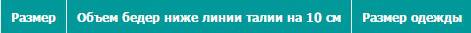| Размер | Объем бедер ниже линии талии на 10 см | Размер одежды |
