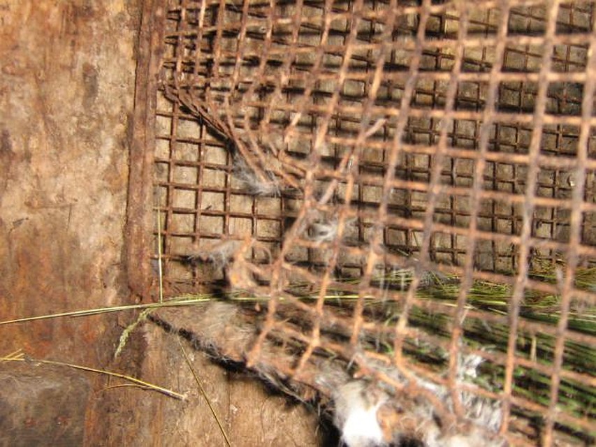Ни близость человека, ни преграда не остановили кровожадное чудовище. Если на улице клетки открыть было несложно, только гвоздик отодвинь, то в сарае они сделаны уже из крепкой сетки. Такую не каждый человек с пассатижами оторвет — прутья толстые и прибита она намертво. Но зверь сумел проломить в ней дыру. Края порванных прутьев вовнутрь загнуты. Скрежет стоял жуткий, а кролики в это время метались от страха, пытаясь забиться как можно дальше.