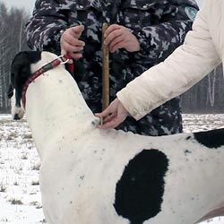 Измерительные приборы следует прикладывать так, чтобы они плотно прикасались к телу собаки и только прижимали шерсть, но не вдавливались в кожу.