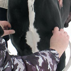 Фото 2, 3. Измерение косой длины туловища.