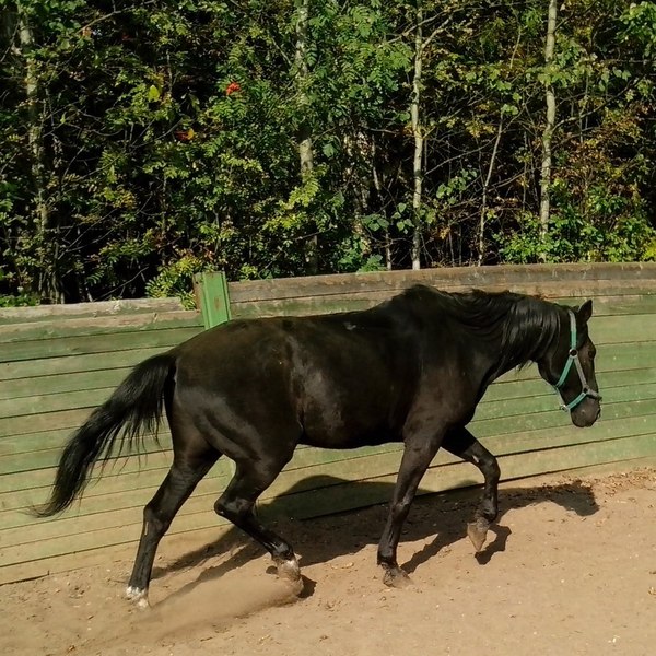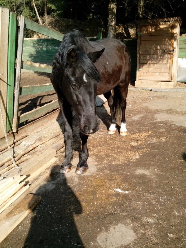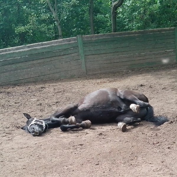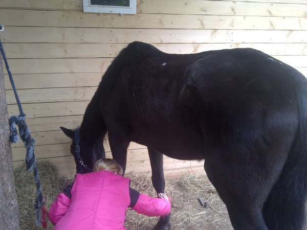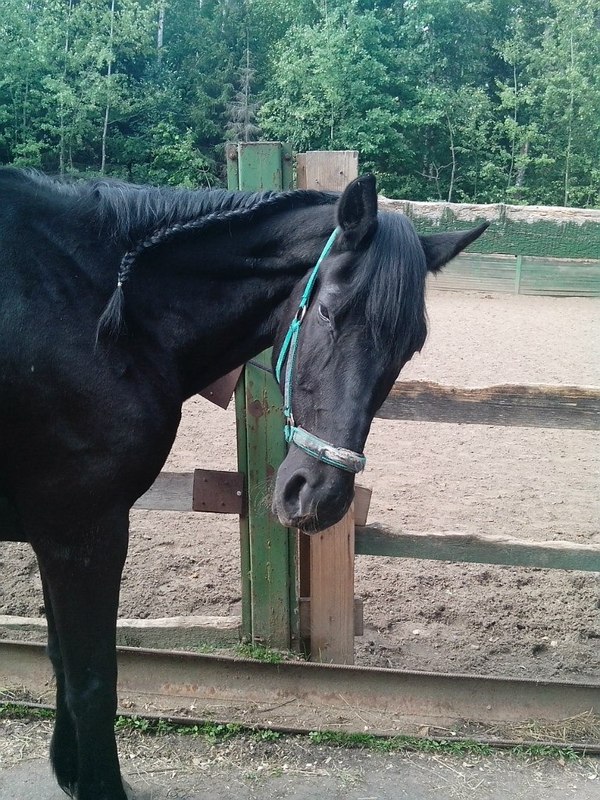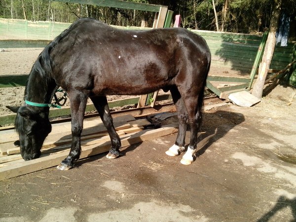 Илюша был изумительным вороным мерином карачаевской породы. Был неимоверно рад, что к нему приходили общаться, проявлял интерес и удивительное терпение к процедурам. Так же она предупредила, что вставать сам он не может и нужно просить конюха его поднимать.