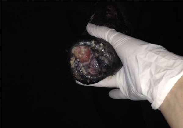 Очень надеемся, что отвалится весь нарост, потому, что операция это будет крайняя мера в его состоянии.