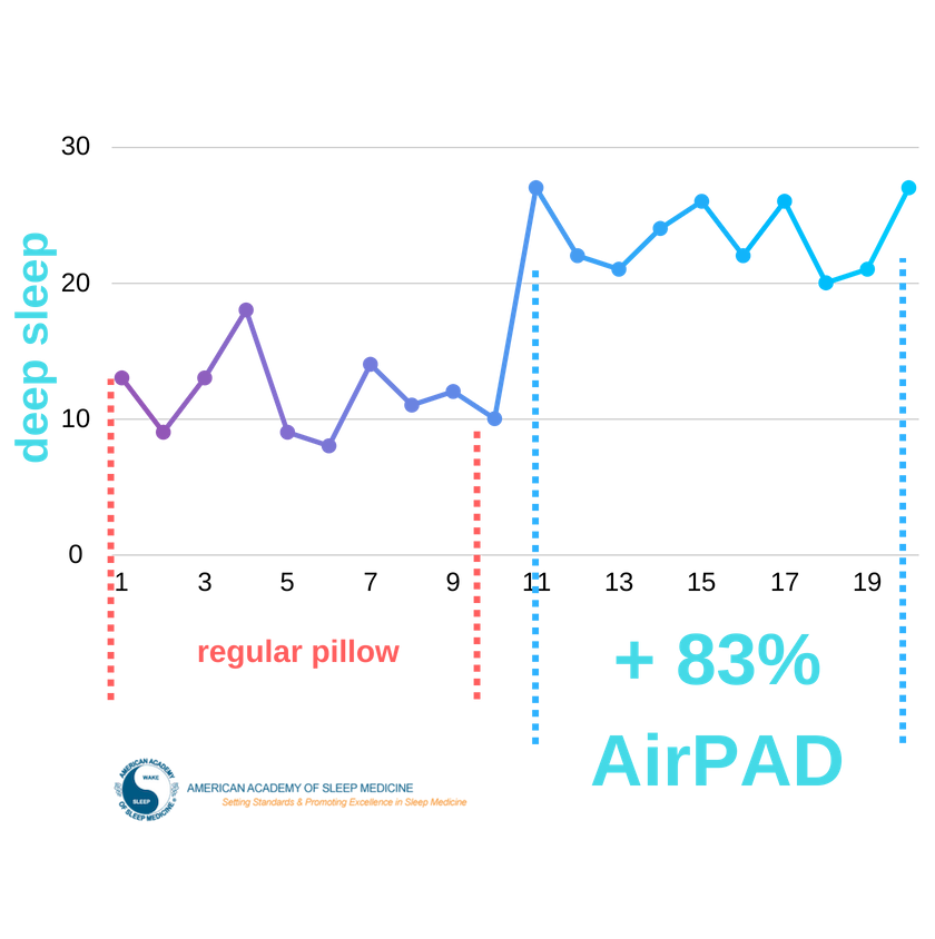 Исследования проводились в 2019г. на общей выборке из 72 человек возрастом от 20 до 65 лет обоих полов по заказу головной компании LLC "MedicalPro". Исследования проводились с помощью измерительного браслета: "xiaomi mi band 1s pulse". Диаграмма отображает средний показатель изменения глубины сна по общей выборке за 14 дней по сравнению с обычной перьевой подушкой.