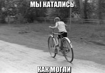 - Сядьте на велик и прислонитесь к стенке или любому столбу;