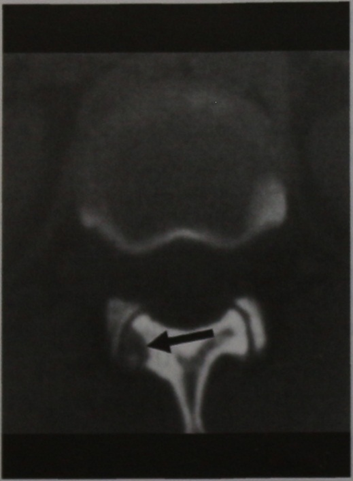• Врожденный дефект корня или межсуставной части дуги подтверждается данными КТ