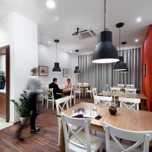Ресторан в саду – это место, которое обязательно стоит посетить. Прямо на территории отеля находится оазис, где лучи солнца ласково играют с цветущим садом отеля Olsanka. Прямо посередине зала расположен фонтан, который выгодно подчеркивает романтическую обстановку этого места. Излюбленное блюдо – итальянская пицца, приготовленная в каменной печи. Ресторан пользуется популярностью у туристов, здесь часто заказывают банкеты или проведения мероприятий.