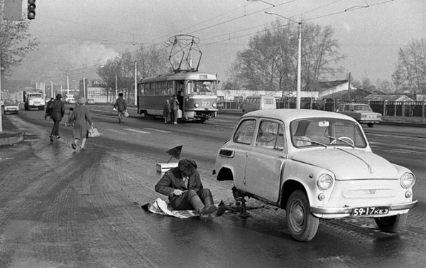 Типичная ситуация для советского автомобилиста: ремонт в пути