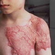 на этой фотографии мальчик после пересадки перфорированного кожного лоскута поэтому у него такой "узорный" рубец