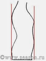 Изделие перекошено из-за особенностей пластики фигуры. У юбок и брюк увеличиваем средний шов, разрезаем шаблон по вертикали, раздвигаем на необходимую величину.