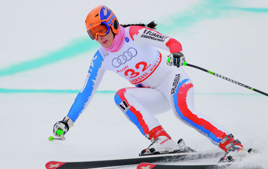 Мария Комиссарова на соревнованиях по скоростному спуску на этапе Кубка Европы по горнолыжному спорту среди женщин.