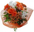 Яркий солнечный букет из роз и хризантем.