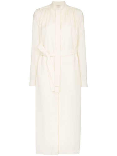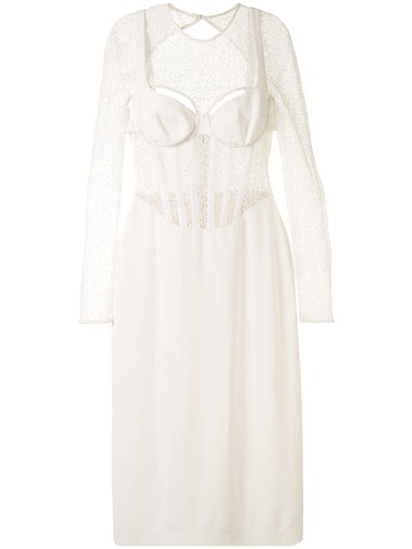 Платье с завязками на воротнике и открытой спиной от Matériel. Горловина на ленточной завязке, длинные рукава и манжеты на пуговицах. Цвет: белый. Состав: Полиэстер/Шерсть