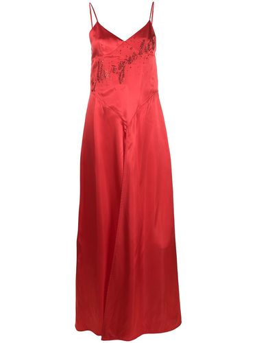 Платье-комбинация с блестками и логотипом от MM6 Maison Margiela. Тонкие лямки-спагетти, открытая спина, расклешенная юбка, детали с блестками и простроченный дизайн. Цвет: красный. Состав: Вискоза