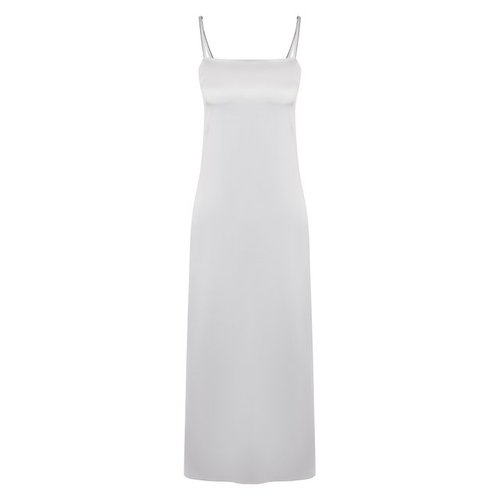 В светло-голубом платье из весенне-летней коллекции 2020 года всего в меру — и провокации, и женственности. За первое отвечают высокий боковой вырез, открытая линия плеч и спины, за второе — легкий струящийся материал на основе шелка. Узкие регулируемые.