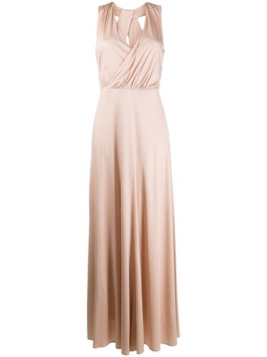 Платье с драпировкой от D.Exterior. V-образная горловина, модель без рукавов, открытая спина и удлиненная модель.