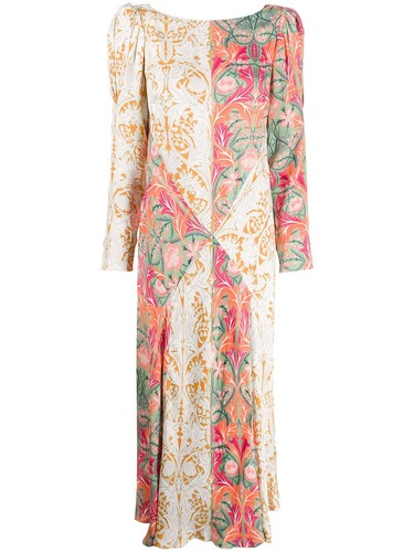Платье миди May с цветочным принтом от Liberty London. Разрез ткани по диагонали, круглый вырез, потайная застежка на молнии сзади, открытая спина, длинные рукава и средней длины.
