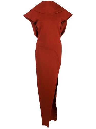 Платье Theresa с боковым разрезом от Rick Owens (Рик Оуэнс). Короткие рукава, приталенный силуэт, открытая спина и удлиненная модель. Цвет: красный.