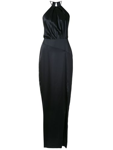 Платье с вырезом халтер и складками от Michelle Mason. Легкая конструкция, приталенный силуэт, деталь со складками, круглый вырез под горло, прорезь на спине, застежка на молнии сзади, тонкие лямки-спагетти, открытая спина, модель без рукавов, приталенн.