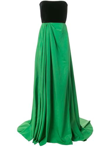 Вечернее платье Dalton без бретелей от Alex Perry. Модель со спущенными плечами, приталенный крой, расклешенная юбка, дизайн колор-блок, открытая спина и застежка на молнии сзади.
