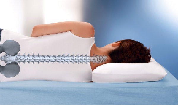 Расстояния, которые возникают между телом и кроватью, нагружают мышцы спины, и не дают расслабиться. Для комфортного сна используются подушки, чтобы подержать позвоночник в правильном анатомическом положении.