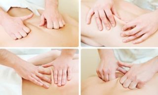 Разминать поясничную область нужно неглубоко и несильно. Оно выполняется обеими руками, подушечками пальцев. Также можно задействовать кулаком. Направления: продольное, поперечное, снизу вверх и сверху вниз.