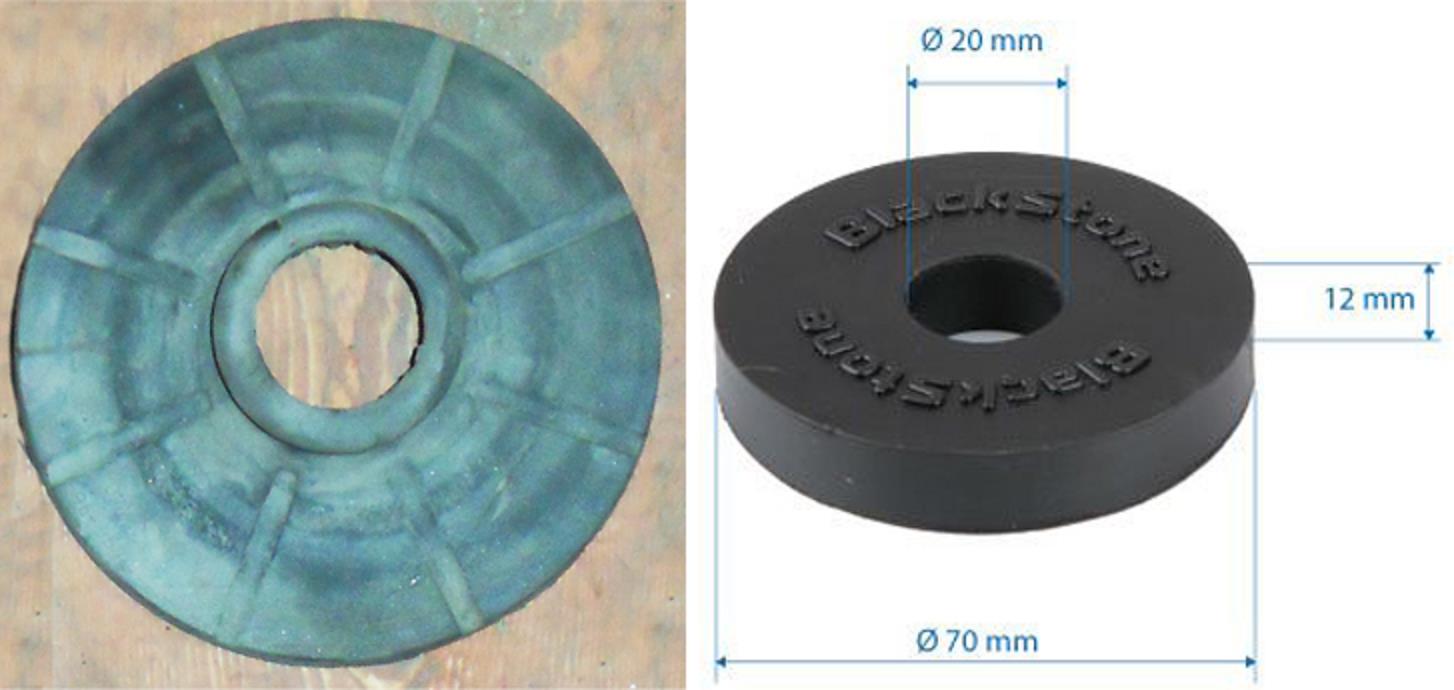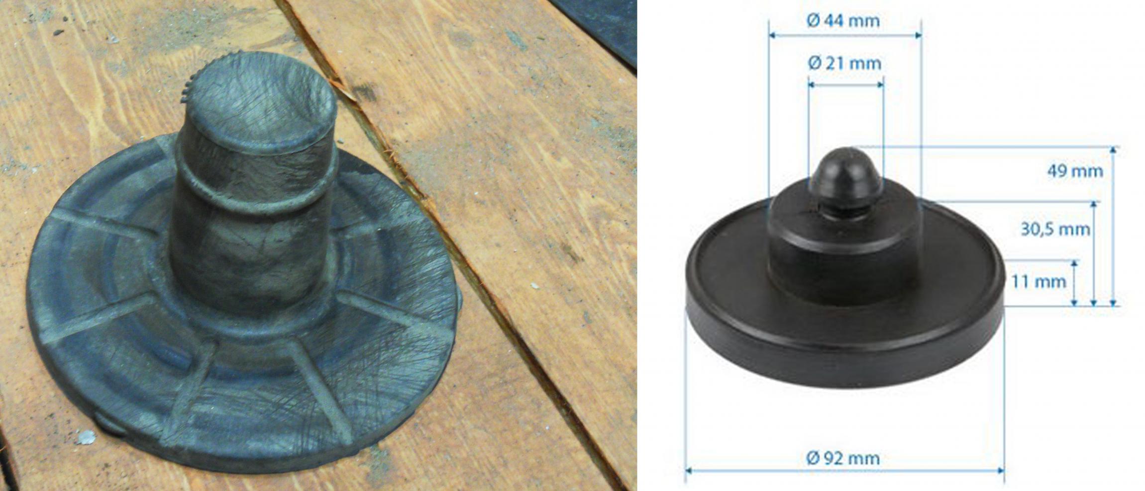 Так как верхний отбойник (бампер, резиновый, рессора к задней оси, верхний) у нас идет цельный без отверстий, а в установочном комплекте имеется свой отбойник, специальной формы, который крепится прямо к кузову автомобиля. То необходимо штатный отбойник доработать. Вот так выглядят штатные отбойники и отбойники из установочного комплекта: