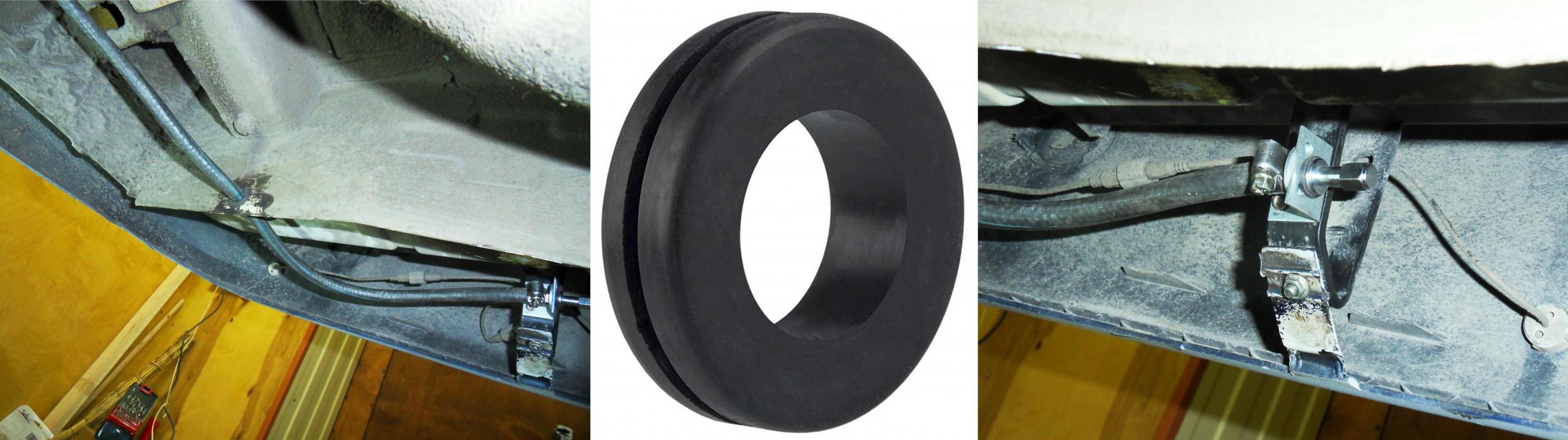 После того как металлический уголок с фитингом был прикреплен, к нему был подведен шланг идущий от центрального выхода фитинга (штуцер-тройник). Для фиксации шланга мне пришлось в кузове просверлить отверстие порядка 25мм и завести в него шланг через кабельную резиновую втулку, размер втулки может быть любой, смотрите по месту и диаметру шланга.