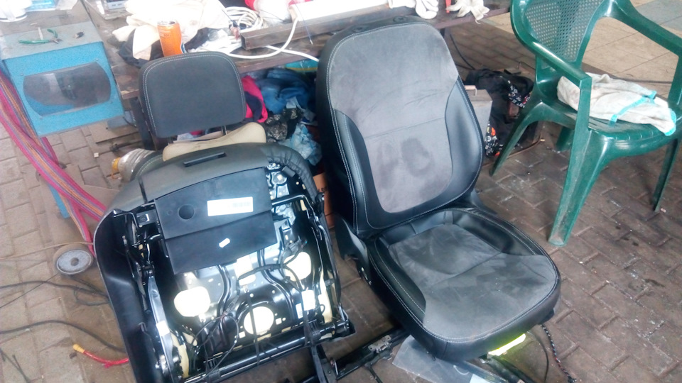 За 3 года владения автомобилем и почти 100 тысяч км, что я провел за рулем мне всегда хотелось действительно комфортных сидений. Мысль эта не давала мне покоя: начиная с первых километров дальнего пути на сток сиденьях – уже после 200 км шея и спина начинали болеть, а ноги затекать из-за плохой циркуляции крови (сток сиденья жесткие и сильно врезаются под колени, отсекая нормальное кровяное давление). И вот в один прекрасный весенний вечер 2018 года мысль о покупке нормальных сидений перешла к действиям в виде поиска сидений от автомобилей VAG-группы на Авито. Выбор пал на всего два на тот момент предложения от одной из авторазборок. Сиденья от Октавии стоили 8 тысяч рублей, а сиденья от Суперба 10 тысяч рублей. По приезду на авторазбор обнаружилось что у сидений от Октавии нет обогрева — на такие жертвы я был не готов и выбор пал в пользу сидений от Суперба. От какой именно модели и какого года выпуска, а уж сколько там пробег был когда сиденья снимали – мне неизвестно, не вникал в этот вопрос, да для меня это вообще не важно. Состояние обивки говорило о том, что эти сиденья лежали на стройке и по ним таскали мешки с цементом, а также прыгали веселые детишки строителей-нелегалов. Но так как внешних повреждений у сидений не было, то решил их брать, о чем не жалею до сих пор! )))