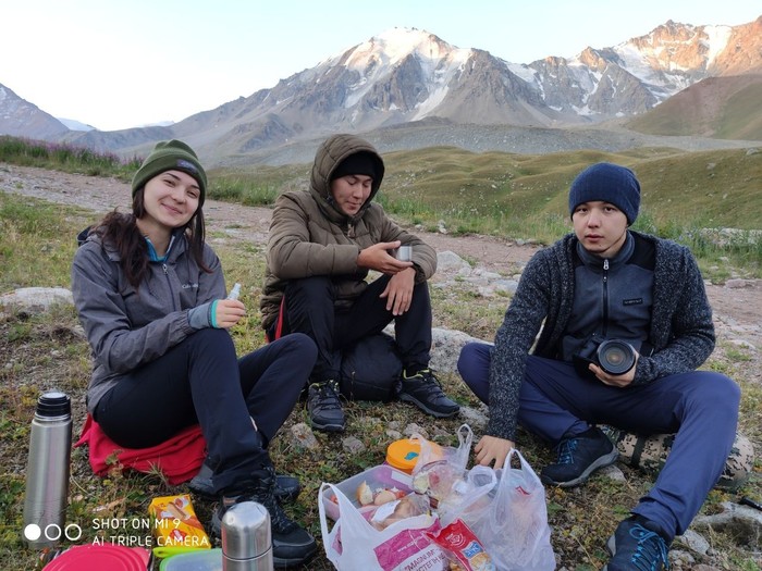 Быстрым темпом начали спускаться низ, добрались до палаток за 3 часа, немного отдохнув, пообедав, собрав все вещи двинулись обратно в сторону большого Алматинского озера