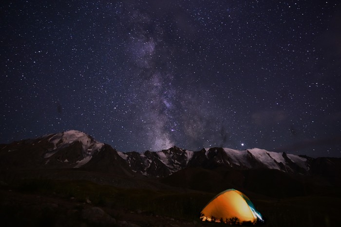 После того как прошли уже 6 км. мы поняли что пропустили свой поворот, начало уже темнеть, и мы решили не сворачивать и идти дальше, после ещё двух километров нашли более подходящее место для установки палаток, установили палатки, переоделись в более тёплую одежду и начали готовить еду. Ночью сфотографировали млечный путь.