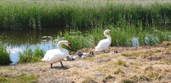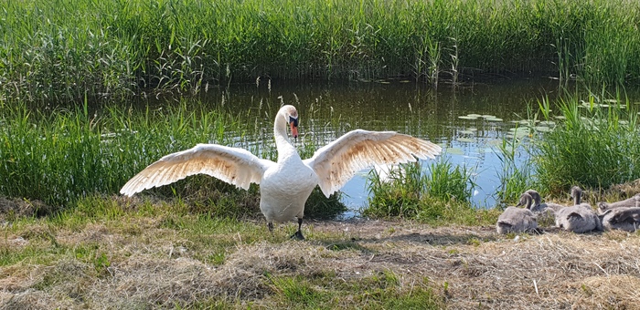 Батя-лебедь на меня с женой осуждающе смотрел и махал крыльями))