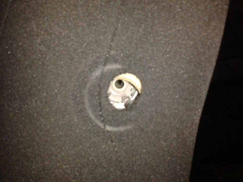 Затем я натянул боковую обшивку, чтобы обозначилась торчащая управлялка, и, попукивая от страха, помня сколько стоит обшивка Cosmo, взял в руки лезвие бритвы и наиаккуратнейшим способом потихонечку вырезал по кругу отверстие её диаметра !