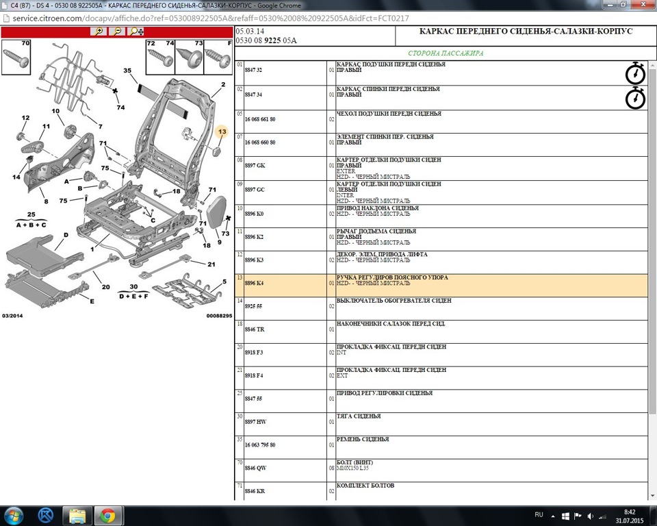 Я заказал саму рамку с механизмом поясничного упора её номер 0167349 за 2 323 рубля