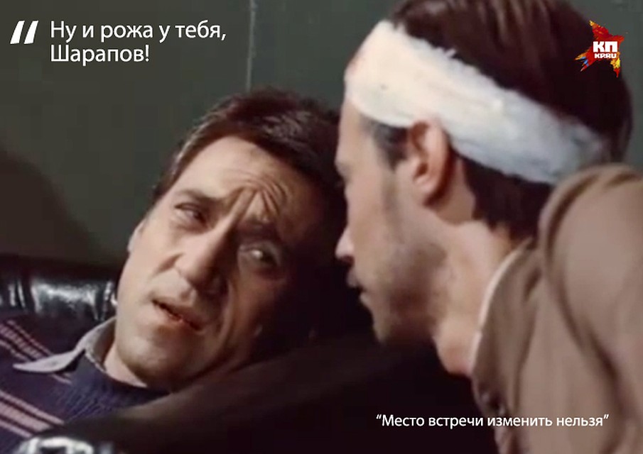 Ну и рожа у тебя, Володя! Ох рожа! Смотреть страшно. Жеглов. Ну и видок у тебя, Шарапов. Он же.