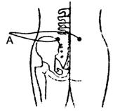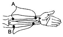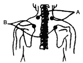 Метод лечения: установите электроды на месте А и В, лечить в режиме массажа 1 и 2, 20 мин.