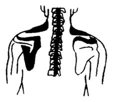 Грудной отдел позвоночника - это ладони, запястья, пальцы, пищевод, сердце, коронарная артерия, легкие, бронхи, грудь, грудная клетка, желчный пузырь, печень, солнечное сплетение, кровь, желудок, поджелудочная железа, селезенка, надпочечники, почки, мочеиспускательный канал, тонкая кишка, лимфа, толстая кишка, пах.