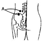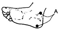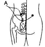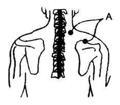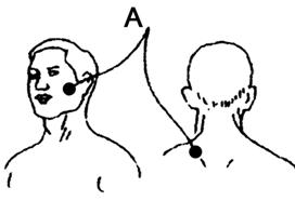 Метод лечения: установите, как указано на рисунке, электрод на места А, задайте режим массажа 2, продолжительность процедуры 20 мин., затем массаж 1 или 3, на 30 мин.