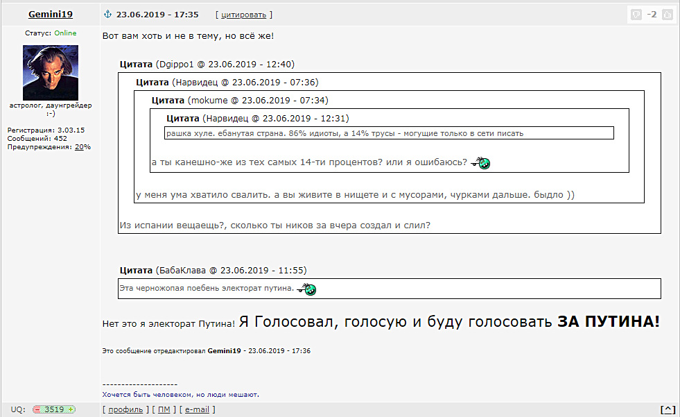 Да что ты говоришь. Как угрожать, что по айпи вычислишь, так не режется, да?