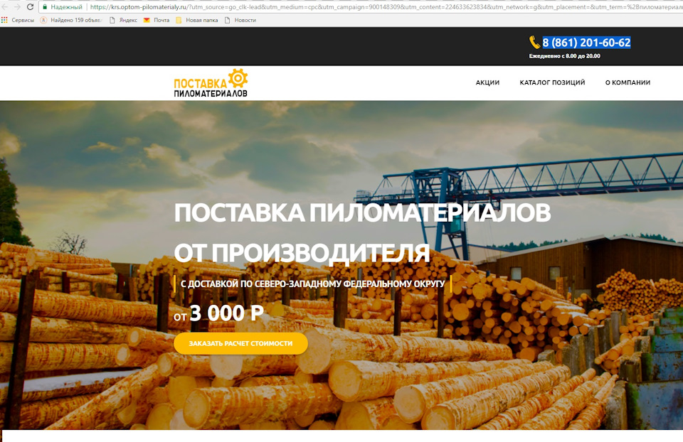 С строке гугл ввожу "пиломатериалы Краснодар". В первой же строчки, якобы поставщик леса от производителя. Заметьте сайт продвину платной рекламой.