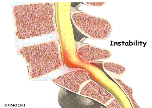 Вот достаточно неплохое определение. При переводе на общечеловеский язык получается, что нестабильность - это некоторое болтание одного позвонка (вышележащего) относительно другого (нижележащего) с возвращением позвонка в своё штатное место.
