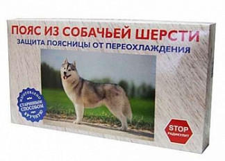 Пояс из собачьей шерсти предохраняет поясницу людей от охлаждения в любых условиях, изготовлен старинным способом вручную. Собачья шерсть - проверенное временем средство избавления от болей в спине при радикулите, остеохондрозе, заболевании почек. В отличие от шерсти других животных, используемой в лечебных целях, шерсть собак: содержит ПАВ, проникновение которых через кожу оказывает благотворное влияние на организм; нейтрализует отрицательные электрические заряды на поверхности тела; прекрасно сохраняет тепло; оказывает колющее действие на кожу, что способствует обильному притоку крови к больному месту.