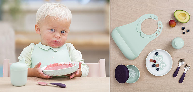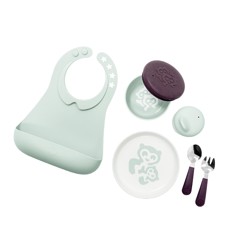 - Надёжно крепится к подносу для стульчика Stokke®, обеспечивая аккуратное кормление
