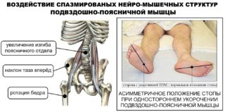 Проблемы возникают в результате спазма мускулатуры, который приводит к сокращению волокон и провоцирует сильные боли, а также утолщение подвздошно-поясничной мышцы. В результате она перестает нормально функционировать. Наблюдается такая клиническая картина: