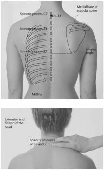 Расположение: между остистым отростком 7-го шейного и 1-го грудного позвонков. Точку определять в положении сидя или со слегка наклоненной головой.