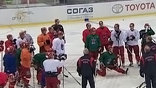 "Я сегодня тренировался вместе с командой. Получил истинное наслаждение от возможности вначале зайти в раздевалку, а потом вместе с ребятами размяться, покататься. И тренер хороший состав сегодня объявил. И я в этом составе я выхожу сегодня", - говорит сам Вячеслав Фетисов.