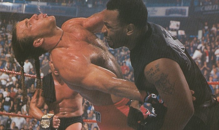 29 марта 1998 года на WrestleMania XIV состоялся матч между Шоном Майклзом и Стивом Остином. На матче присутствовал Майк Тайсон, играя роль инфорсера — борца, выступающего в качестве телохранителя другого борца при его выходе на ринг. За это он получил от WWF сумму в 3 млн долларов.