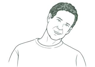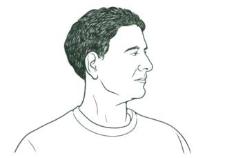 Опустите подбородок к правому плечу. Не поднимая головы, медленно переведите его к левому плечу, как будто чертите полукруг подбородком на груди. Повторите в другую сторону.