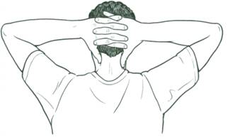 Сцепите руки в замок, положите на затылок и слегка надавите. Сопротивляясь давлению, удерживайте шею прямой.